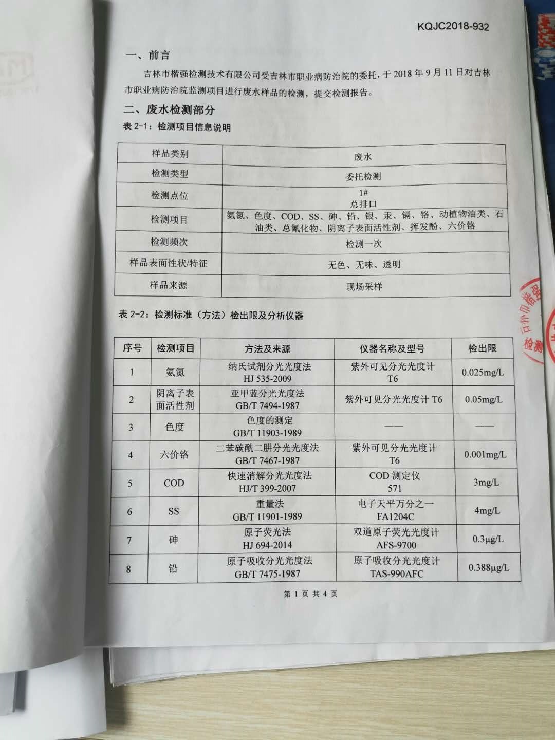 吉林市職業(yè)病防治院2018年度排污情況公示表2